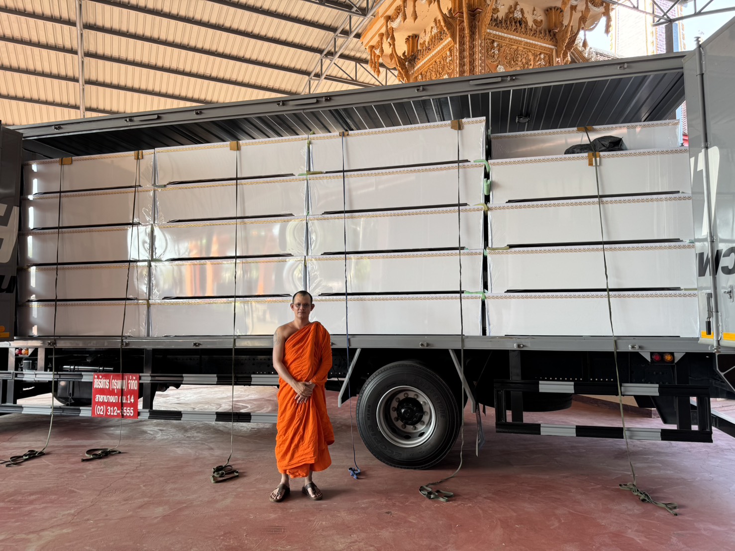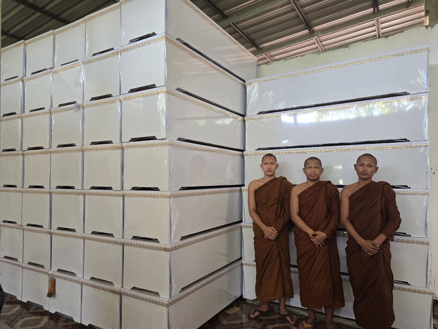 20/2/69 ทางสุริยาหีบศพเป็นตัวแทส่งมอบหีบบริจาคให้กับวัดป่าสัก จำนวน 50 ใบ