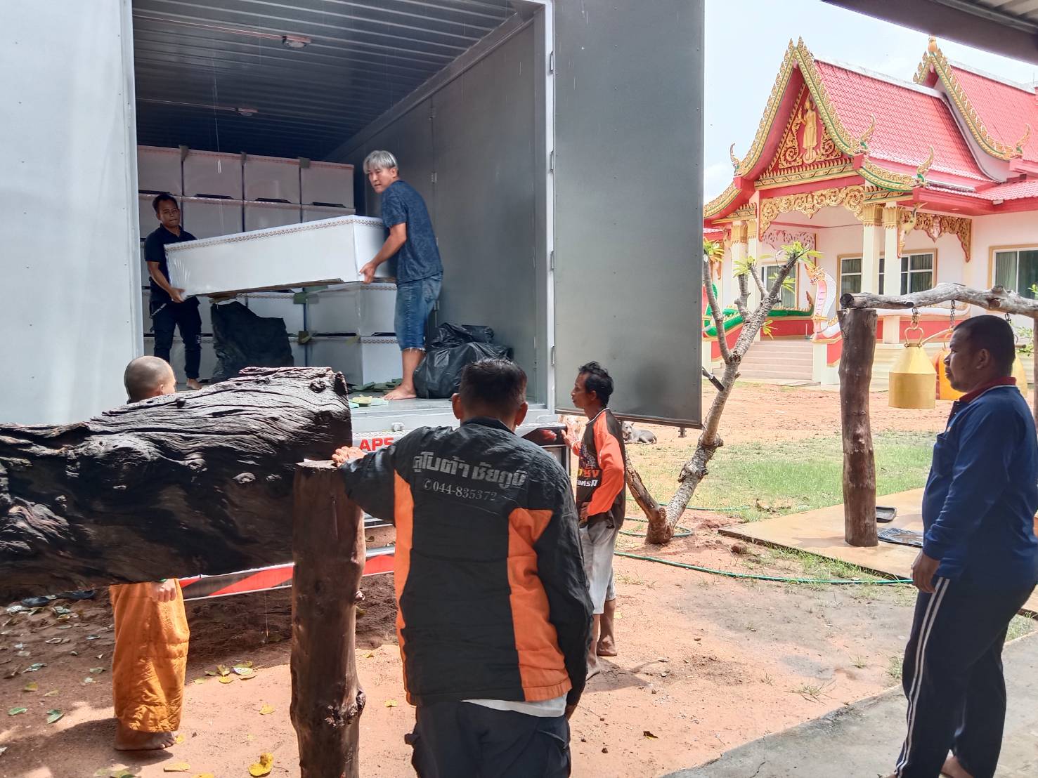 12/9/68 ทางสุริยาหีบศพเป็นตัวแทนส่งมอบหีบบริจาคให้กับวัดซับเจริญสุข จำนวน 50 ใบ