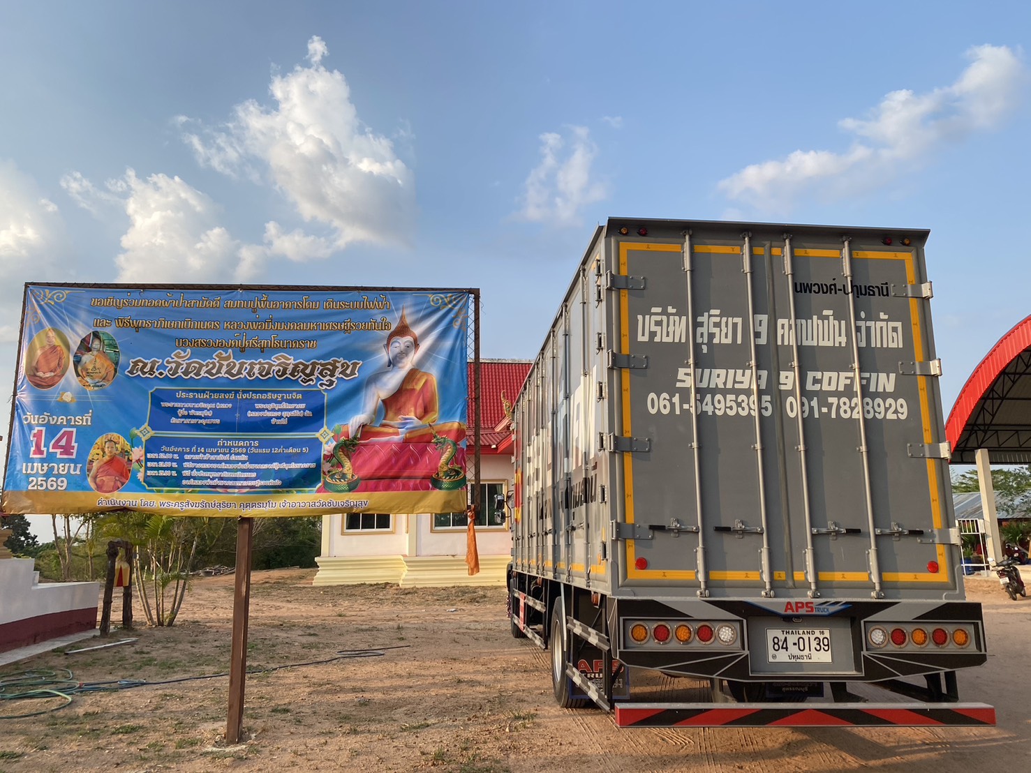 31/3/69 ทางสุริยาหีบศพเป็นตัวแทนส่งมอบหีบบริจาคให้กับวัดซับเจริญสุข จำนวน 80 ใบ